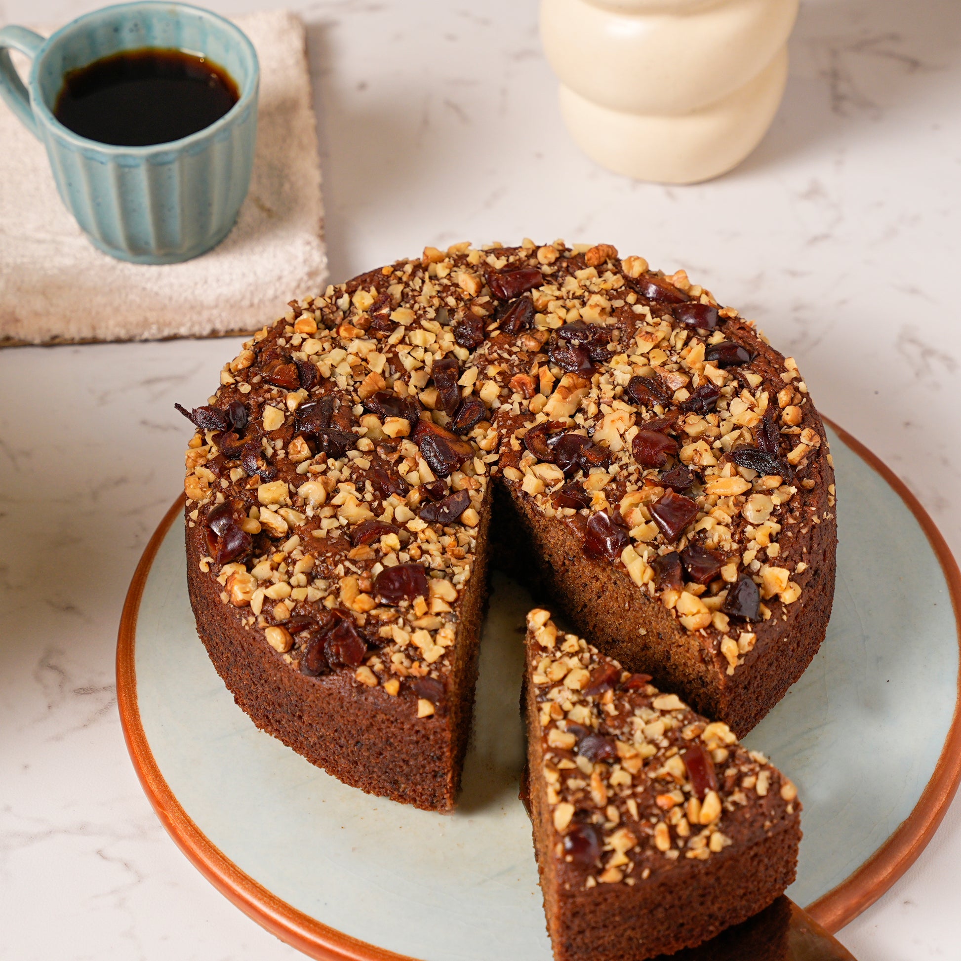 Savor the goodness of Karamele's Date & Walnut Cake – a sweet treat made with nature’s finest