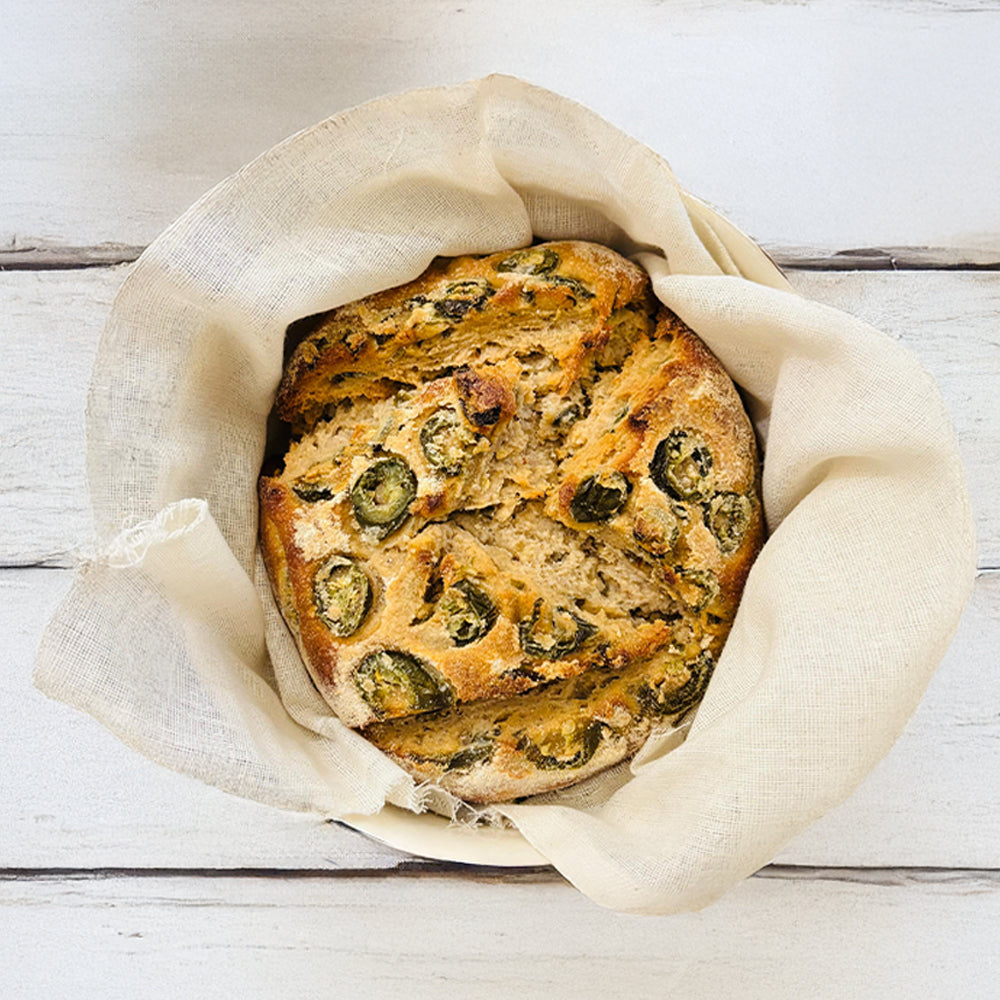 Breads just got a lot more interesting with Karamele’s Sourdough Jalapeño Big Bread Loaf! With a tinge of acidic jalapeños and our in-house Italian herbs mix, our mildly sour Sourdough Jalapeño Big Bread Loaf contains high-quality protein and is easy to digest!
