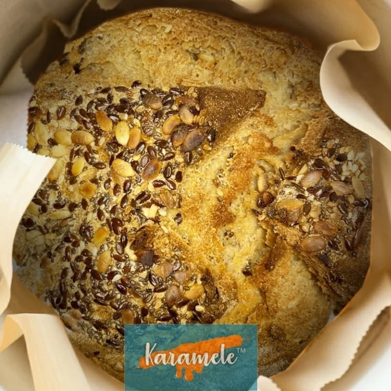 Karamele’s Sourdough Mix Seed Big Bread Loaf is a delicious gluten-free and Plant Based treat!